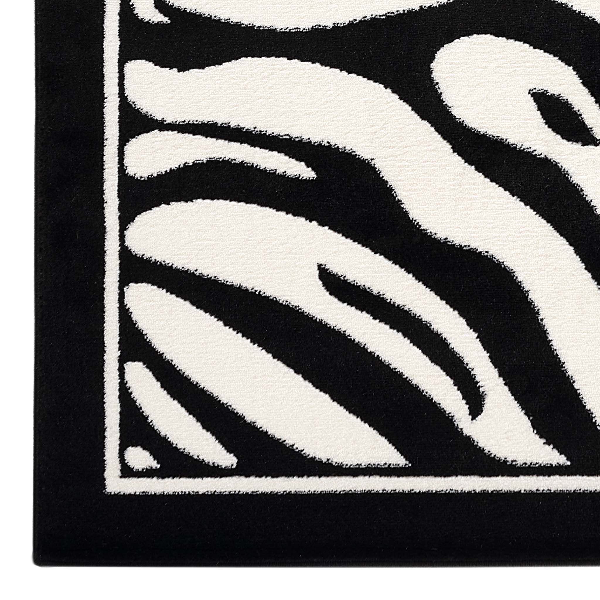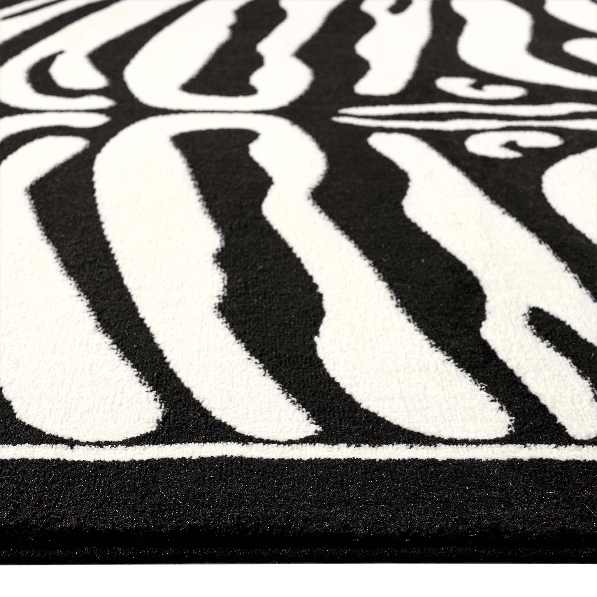 Ideal for living rooms, bedrooms, offices or styled commercial spaces that call for a black and white statement rug.