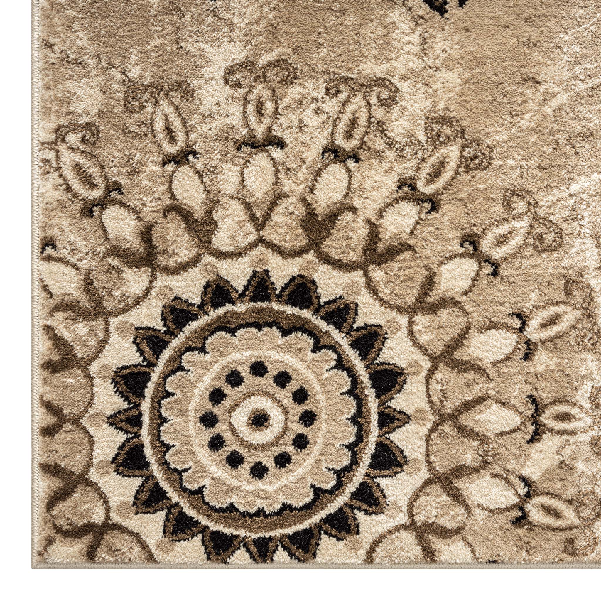 Valente Chocolate Rug brings depth and warmth into a space with its rich brown tones and detailed medallion design. The layered patterning gives it a traditional character, while the neutral chocolate and beige palette keeps it versatile for modern homes.
