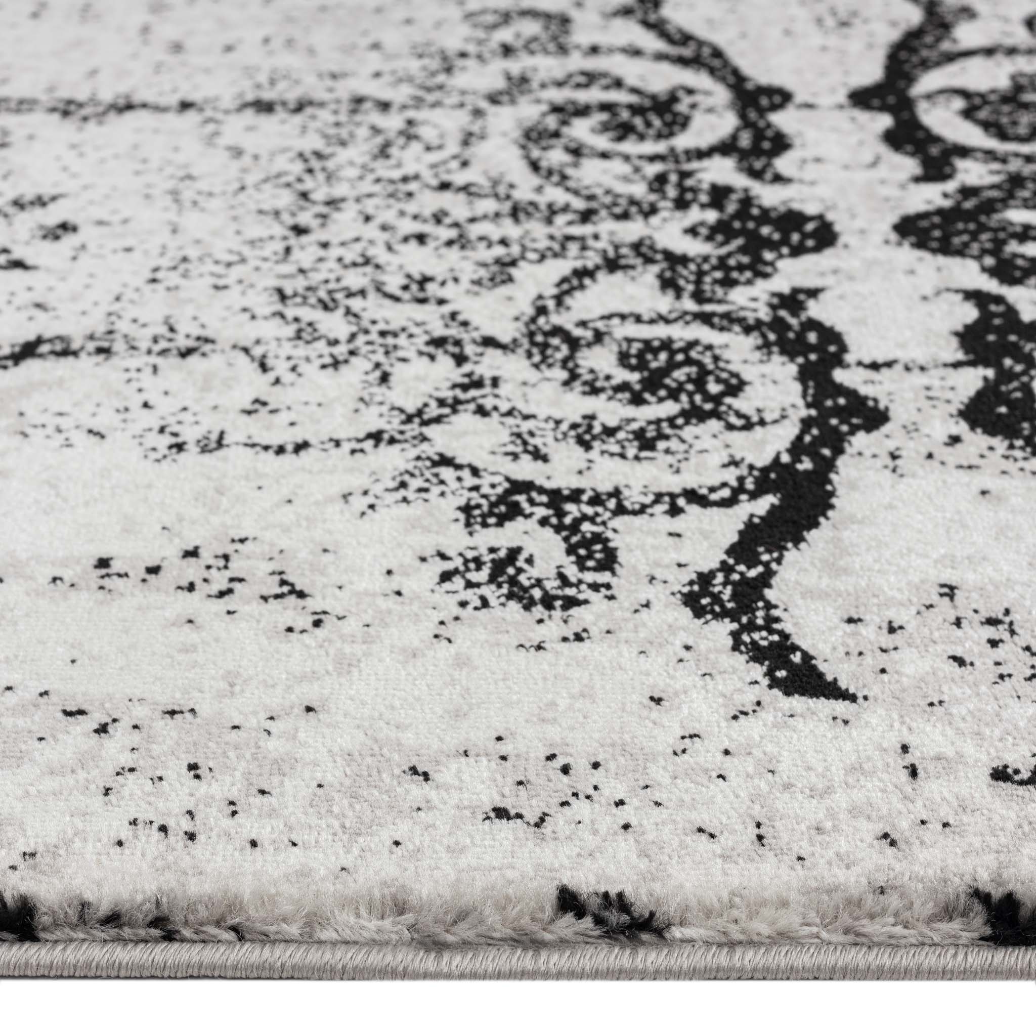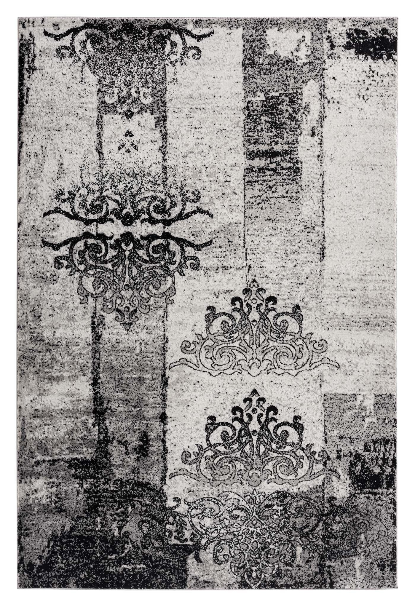 Monroe Grey Rug brings a refined character into larger living spaces. Its soft grey base, layered with subtle distressed detailing and classic ornamental accents, creates a balanced look that feels timeless in modern homes.