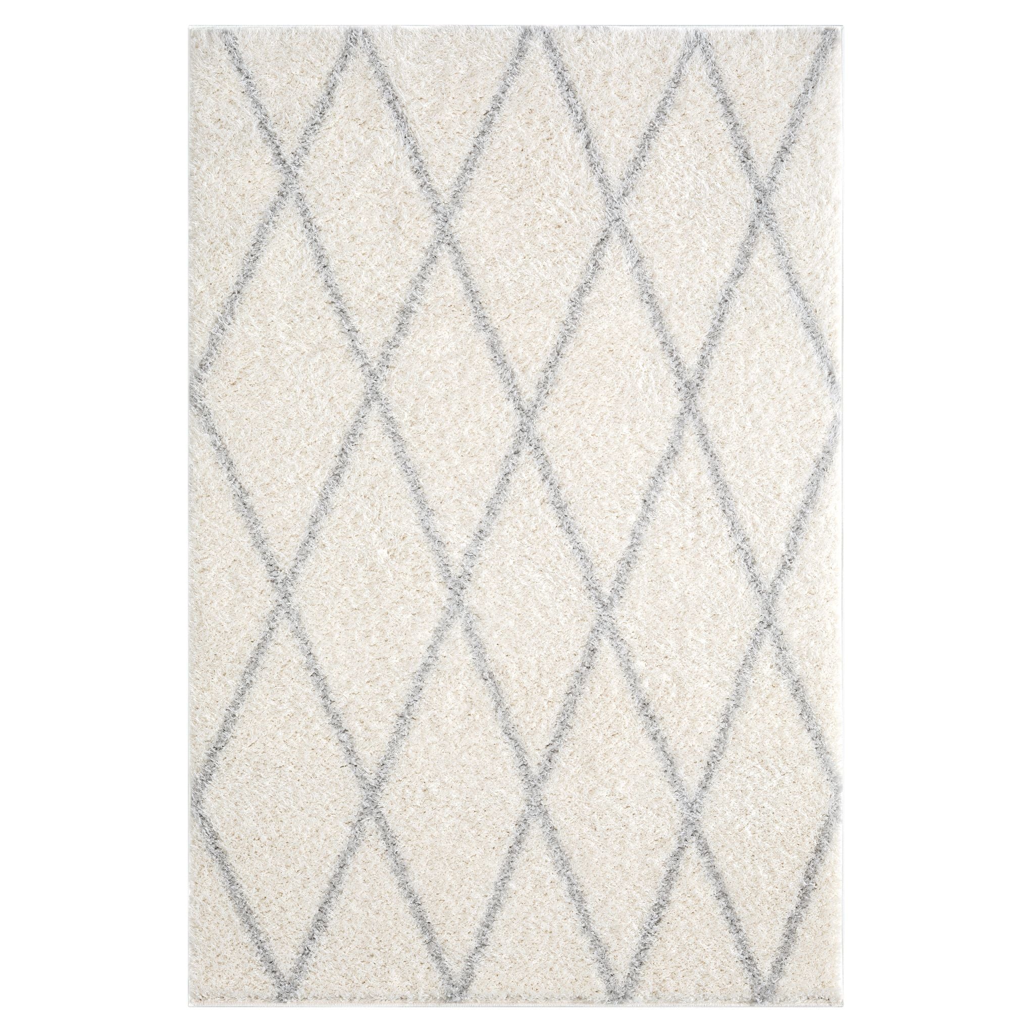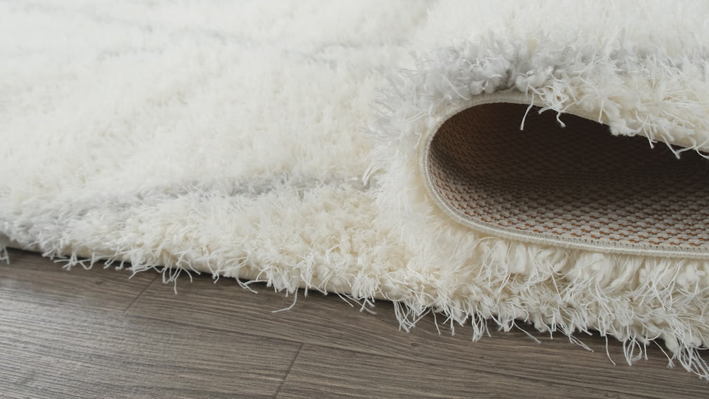 Elora Sand Plush Rug features a soft diamond pattern in warm ivory and gentle grey tones, giving it a clean look that works effortlessly in modern homes. With a 45mm high pile, it delivers a thick, cushioned feel underfoot.