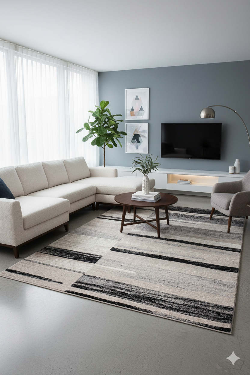 Brixton Grey Rug is designed to bring a refined, modern touch to living spaces. Its blend of beige, grey and black tones creates gentle contrast while maintaining a balanced, versatile look that complements a wide range of interiors.